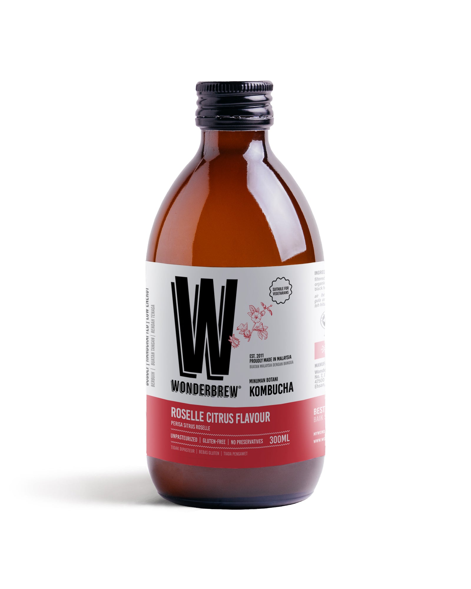 filtered water, organic cane sugar, black tea, roselle, lime, organic Kombucha culture.